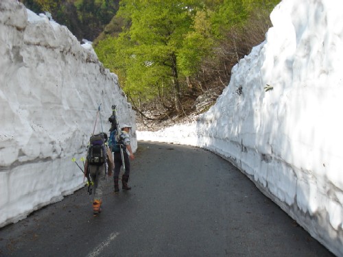 季節外れの寒気で稜線は雪。林道もまだ通行止めの為登山者は少なく石転び沢は予定通り貸切でした。