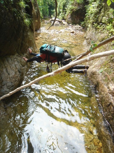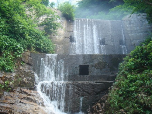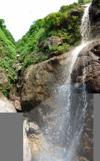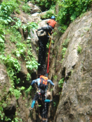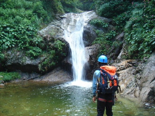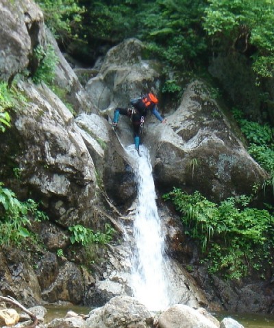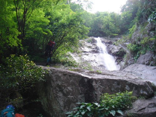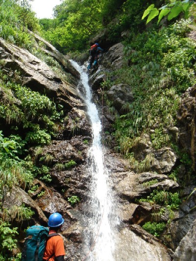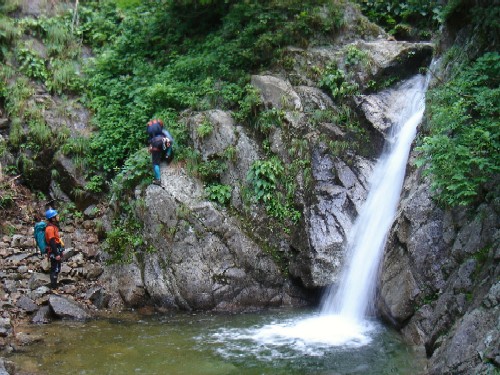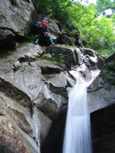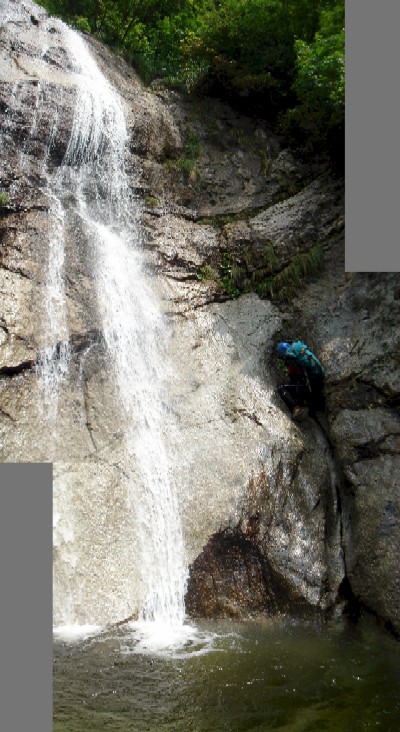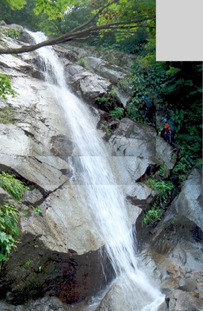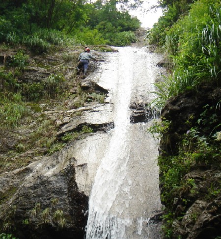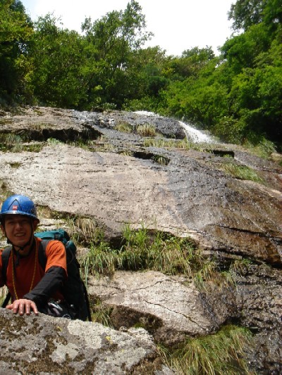普通は巻く滝。ミッキーが果敢にチャレンジ。でも最後は上からお助け紐。