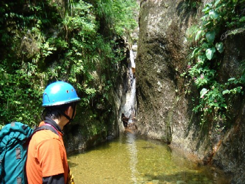 高巻きに入ったコースリーダーを引き戻し、やでもか登らせる。結構厳しい。