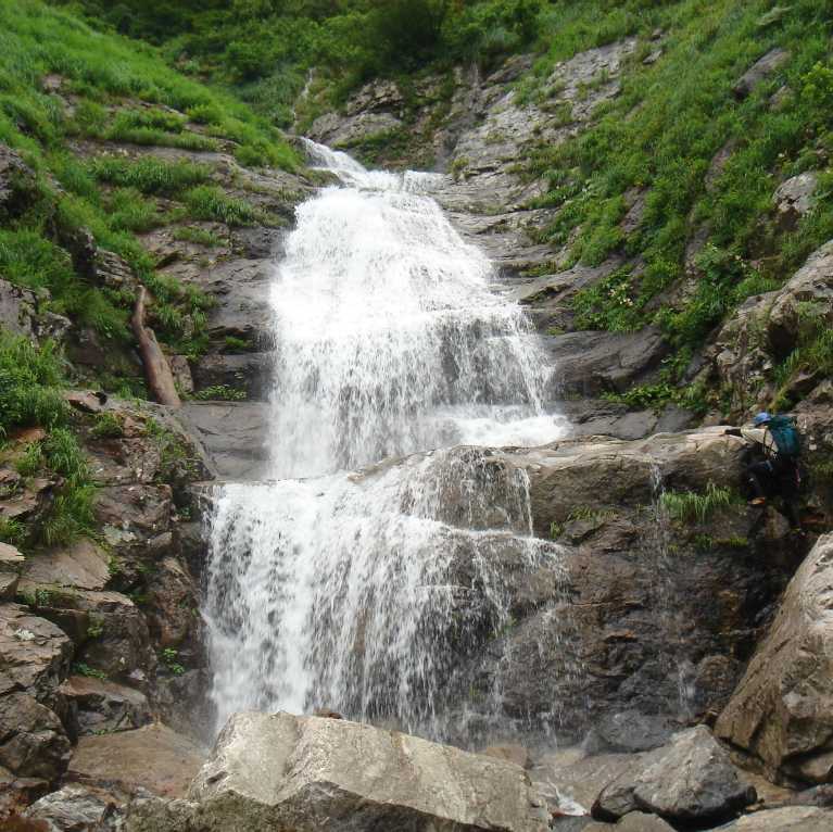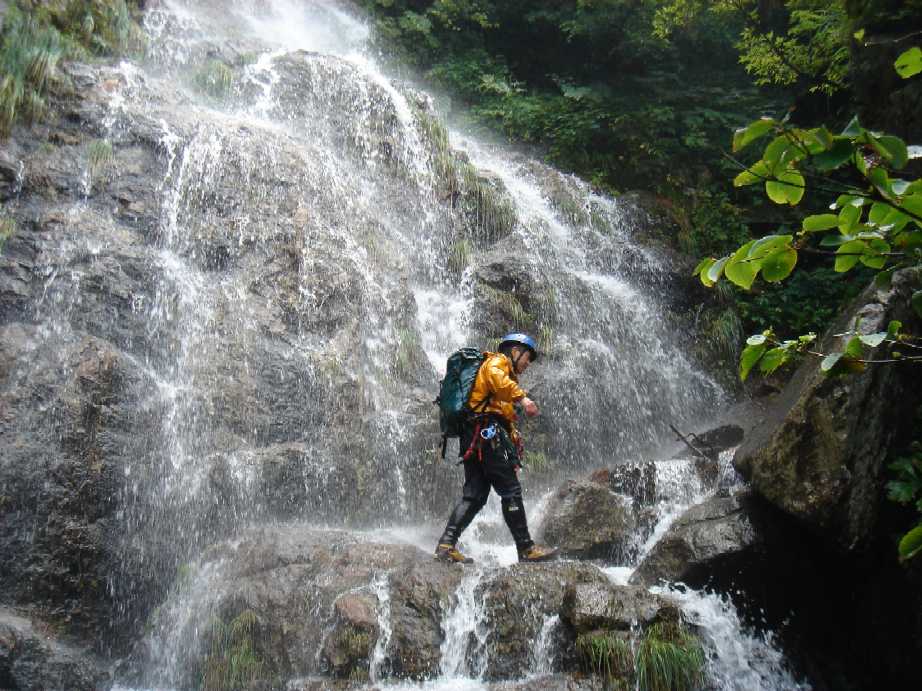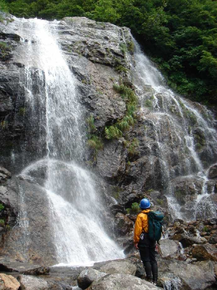 滝沢最初の滝(30m)ノーザイルでパス