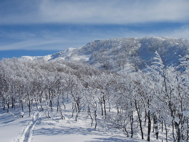 快晴の中、絶景とパウダーを楽しむ。外山単独