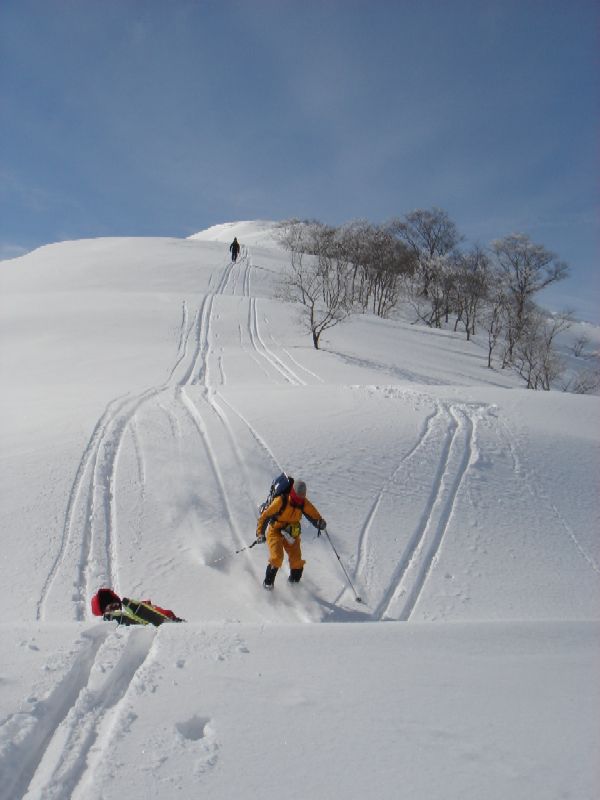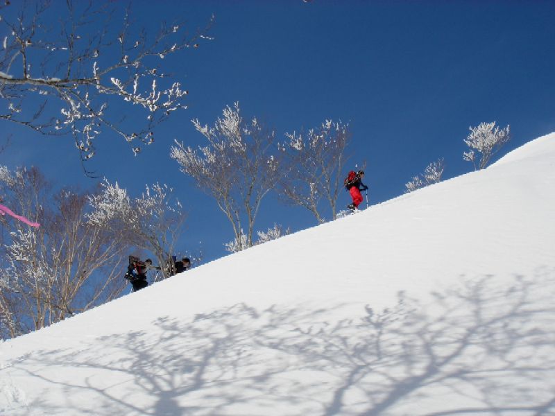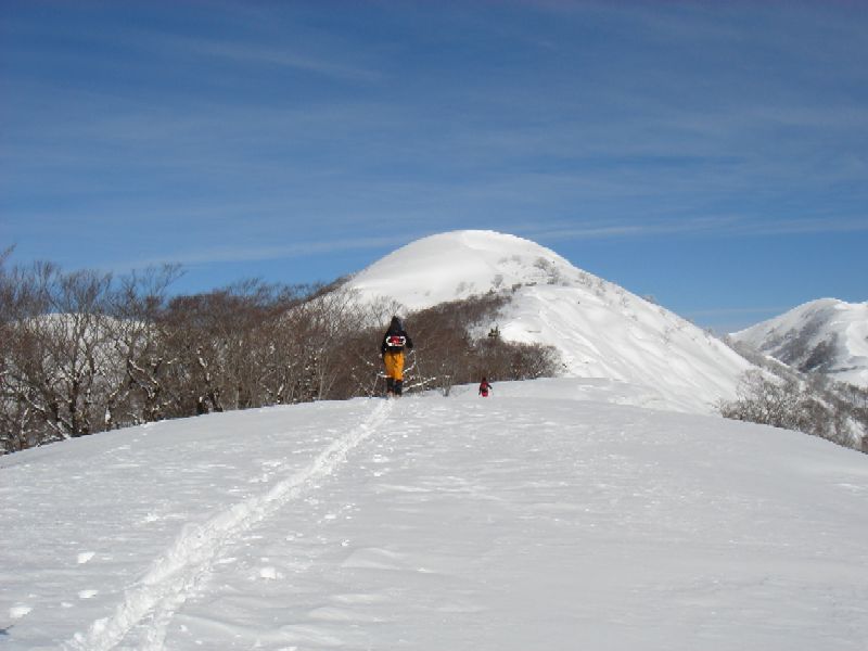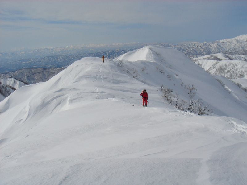 飯森山山頂付近・・・クラスとした痩せ尾根だがやでもかスキーで登る