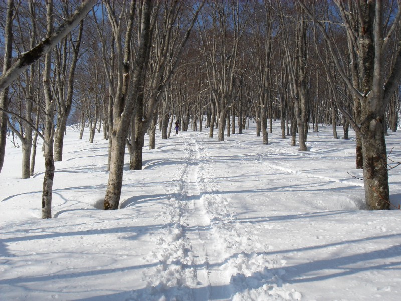 妙高休暇村スキー場から藤平山の尾根に取り付く。広いブナ林が続く。