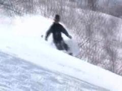 頂上1つ手前のピークからの降り。45度の斜面を雪崩を起こしながら滑る。