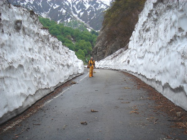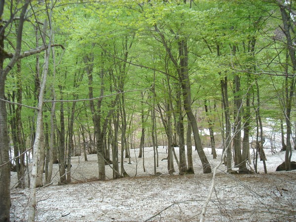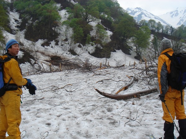 雪崩でやられたブナ林。今年は異常な降り方をしたようだ。
